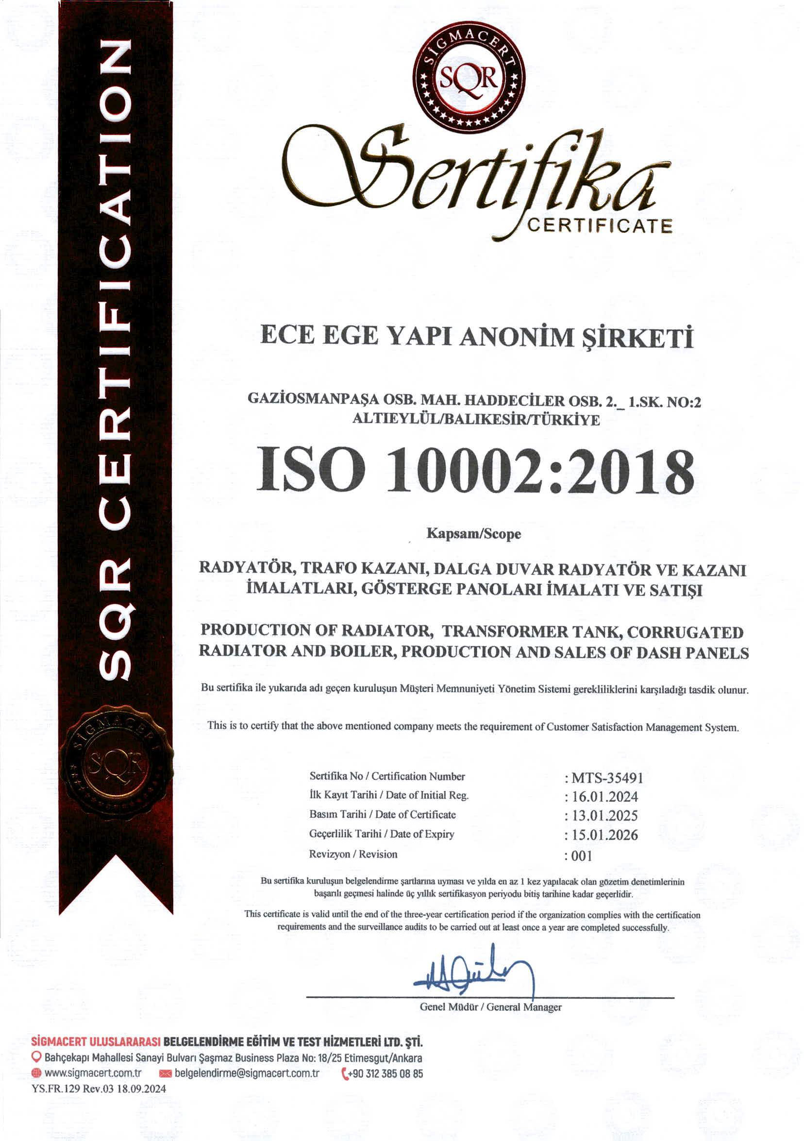 Kalite, Çevre, İş Sağlığı ve Güvenliği konularının tümünü içine alan Entegre Yönetim Sistemimizin amacı; paydaşlarımızın ihtiyaç ve beklentilerini karşılamak, topluma, çevreye ve çalışanlarımıza karşı olan sorumluluklarımızı yerine getirmek, hizmet kalitemizi sürekli iyileştirmektir.